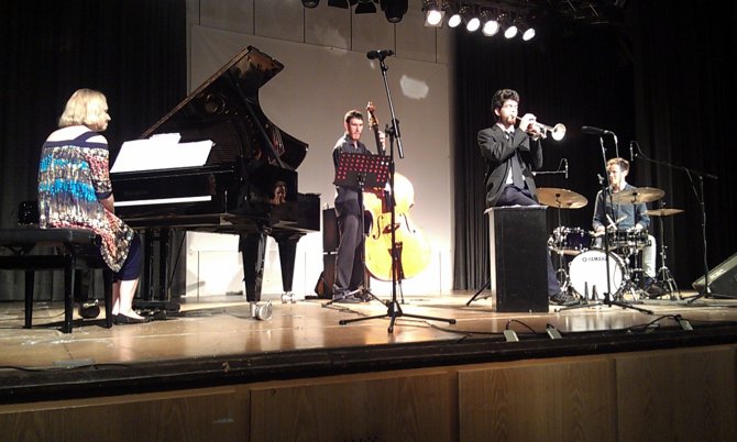 Das Jazz-Quartett aus Indianapolis, das auf Einladung des Freundeskreises Köln-Indianapolis nach Köln gekommen war, begeisterte rund 300 Zuhörerinnen und Zuhörer aus Porz. Unter der Leitung der bekannten Jazz-Pianistin Monika Herzig war das Quartett aus dem Mittelwesten der USA nach Porz gekommen und spielte nicht nur Stücke aus der langen Geschichte des Jazz. Vielmehr erläuterte Monika Herzig die Hinter-gründe, so dass die Besucher auch viel über die große Tradition des Jazz in Indiana erfahren konnten. Mit-glieder des Quartetts waren junge Talente, die ihre Ausbildung im Jazz-Programm der Indiana University absolviert und bereits erste eigene Lorbeeren errungen haben.