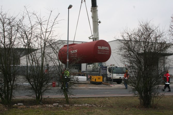 Wie das Unternehmen uns mittelte schreitet der Bau des vierten Sanierungsbrunnens zum Abpumpen von ausgelaufenem Kerosin voran. Am Samstag, 23. Februar, wurden mit einem Spezialkran im Gewerbegebiet Rheinbogen in Wesseling die Brunnenkammer sowie der Kerosinauffangbehälter in die dafür vorbereiteten Gruben eingebracht. Die etwa 24 Tonnen schwere und 2,5 Meter tiefe Brunnenkammer umgibt die wesentlichen Elemente der Brunnenausstattung. Dazu gehören Armaturen, Anschlüsse sowie der sogenannte Brunnenkopf. Unter diesem befindet sich der eigentliche Brunnen mit den Pumpen für Kerosin und Grundwasser. Neben der Brunnenstube wurde der etwa neun Tonnen schwere Container installiert, in dem abgepumptes Kerosin aufgefangen wird. Der Behälter hat ein Fassungsvolumen von 40 Kubikmetern.